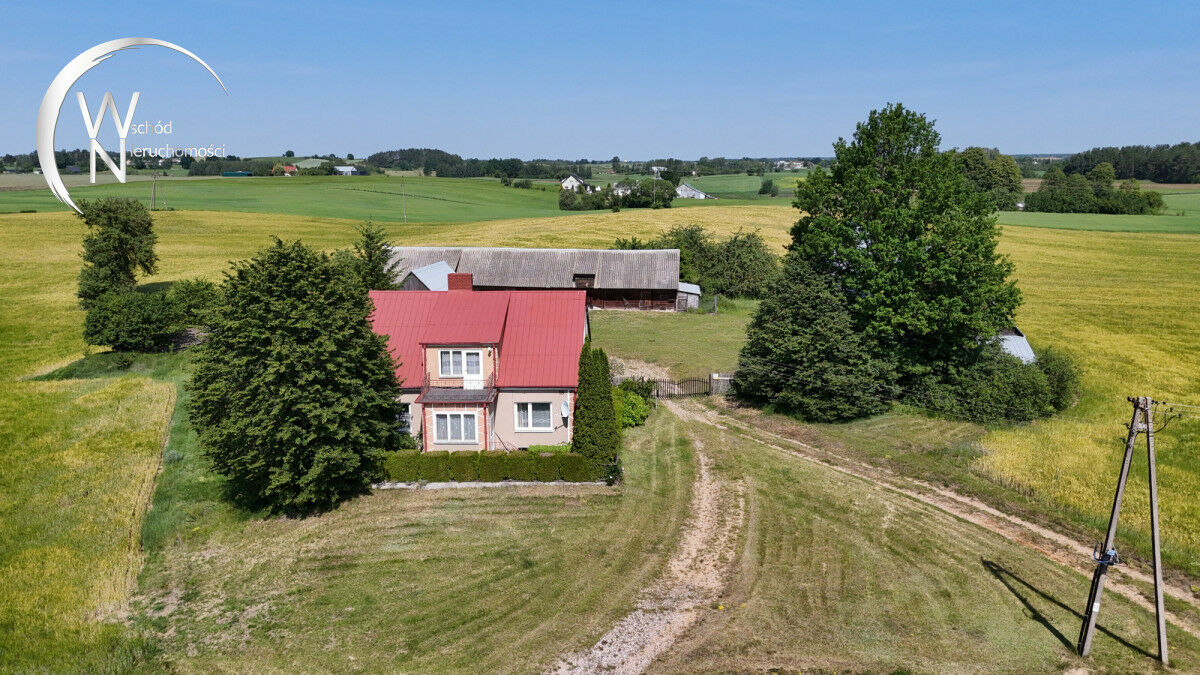 Dom murowany o powierzchni ok. 100 m², wybudowany w 1976 roku. Na parterze znajdują się trzy pokoje, przestronna kuchnia, łazienka, spiżarnia i korytarz. Poddasze użytkowe - podzielone na pokoje, do wykończenia. Budynek jest częściowo podpiwniczony (dwa pomieszczenia), ogrzewany olejowo, z wymienionymi oknami. Woda z własnej studni, z możliwością podłączenia do sieci wodociągowej.