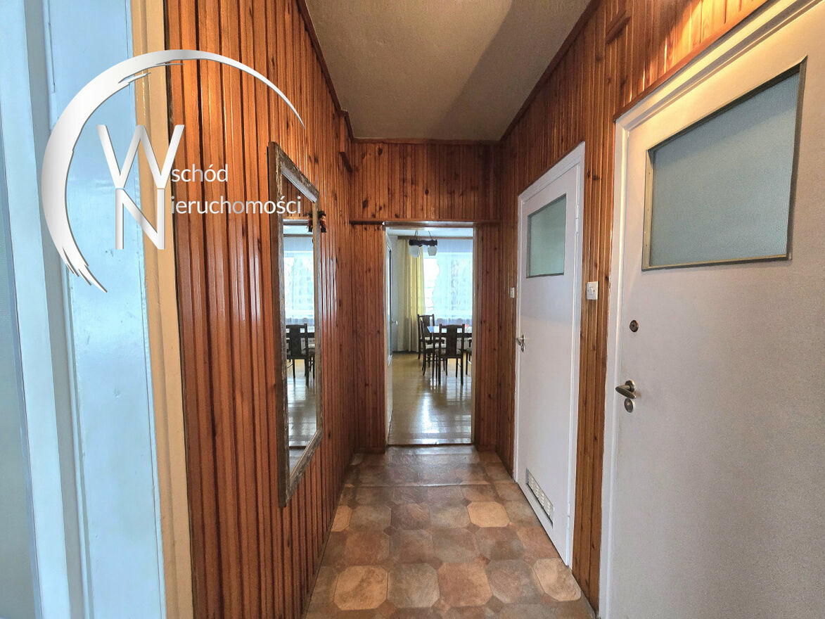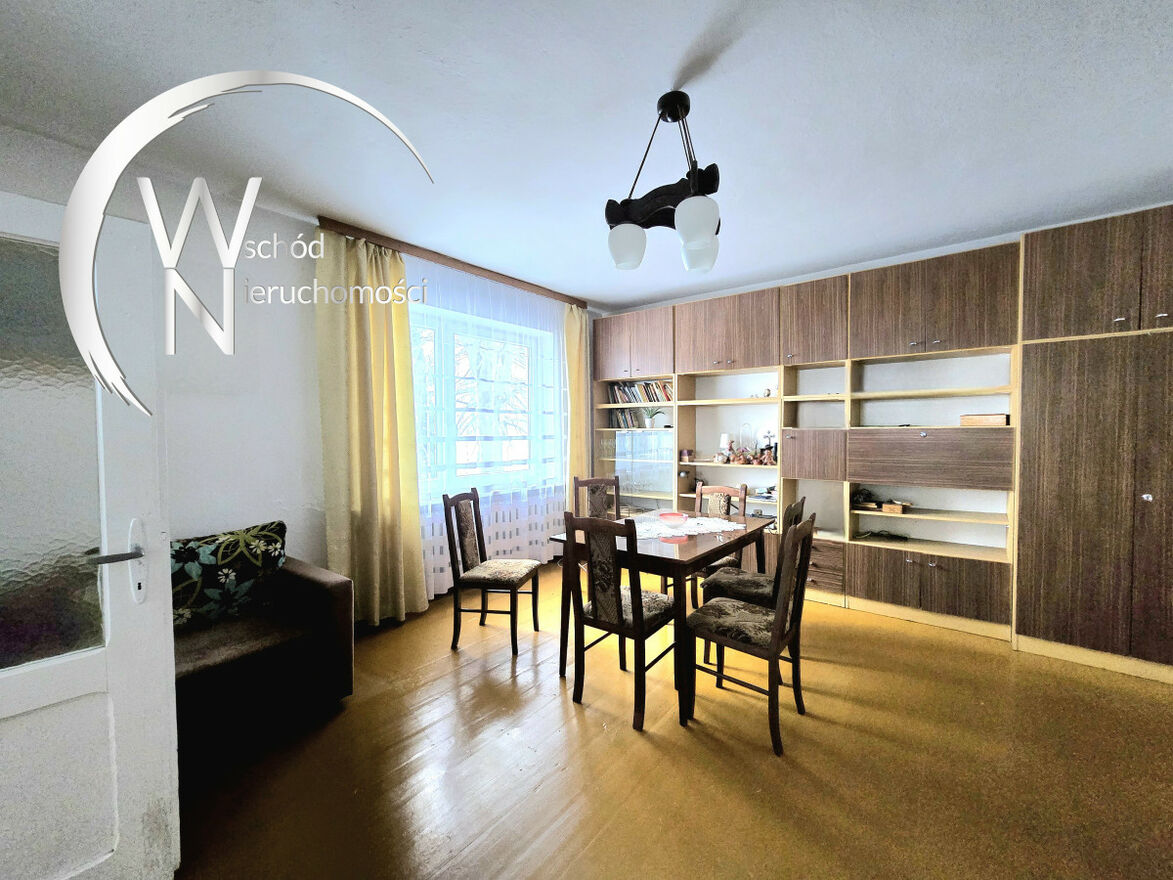 - parter: trzy pokoje, duża kuchnia, łazienka, spiżarnia, korytarz, schody na poddasze,